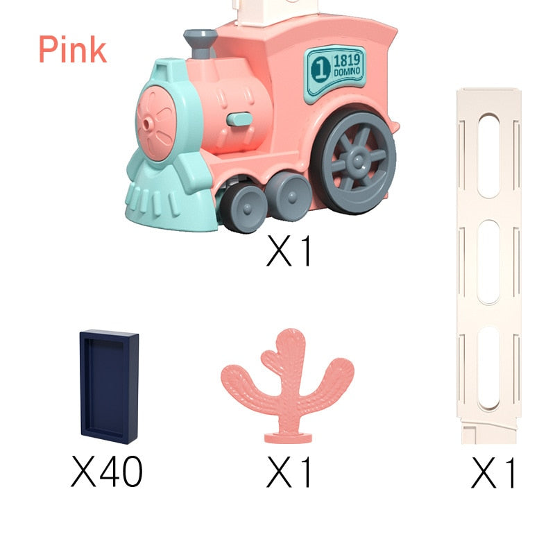 ערכה אוטומטית. סט רכבת הדומינו יכול לעצב נתיבי דומינו שונים, עם אפקטים של קיטור ואור כדי להגביר את השובבות של הילד. צעצוע כיפי לילדים והורים. רכבת הדומינו עשויה מחומר ABS, פלסטיק לא רעיל, חסר טעם. הרכבת והאריחים חזקים, מעוגלים ובלתי שבירים. הורים יכולים לתת לילדיהם לשחק בביטחון.